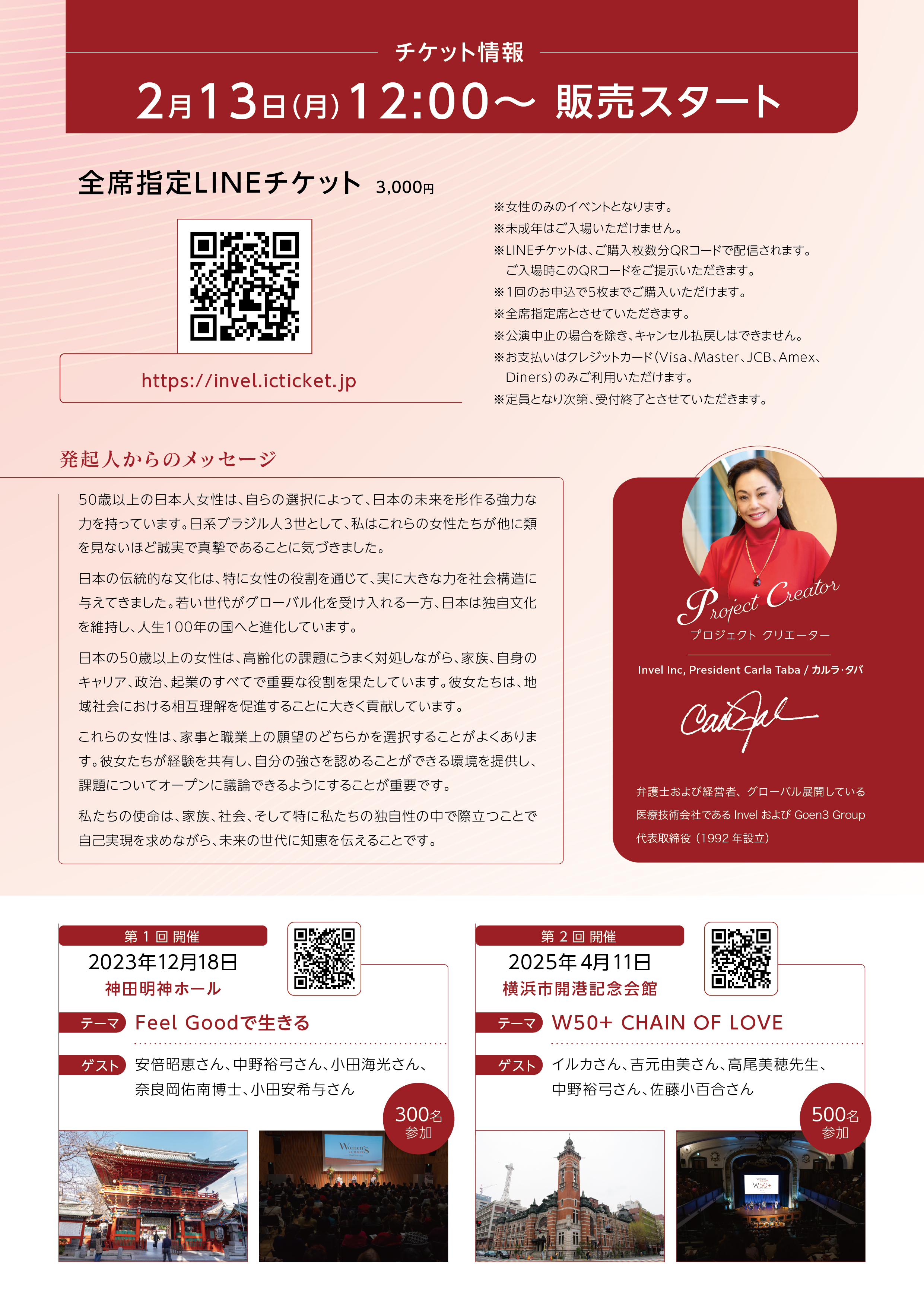 ※LINEチケットは、ご購入枚数分QRコードで配信されます。ご入場時このQRコードをご提示いただきます。